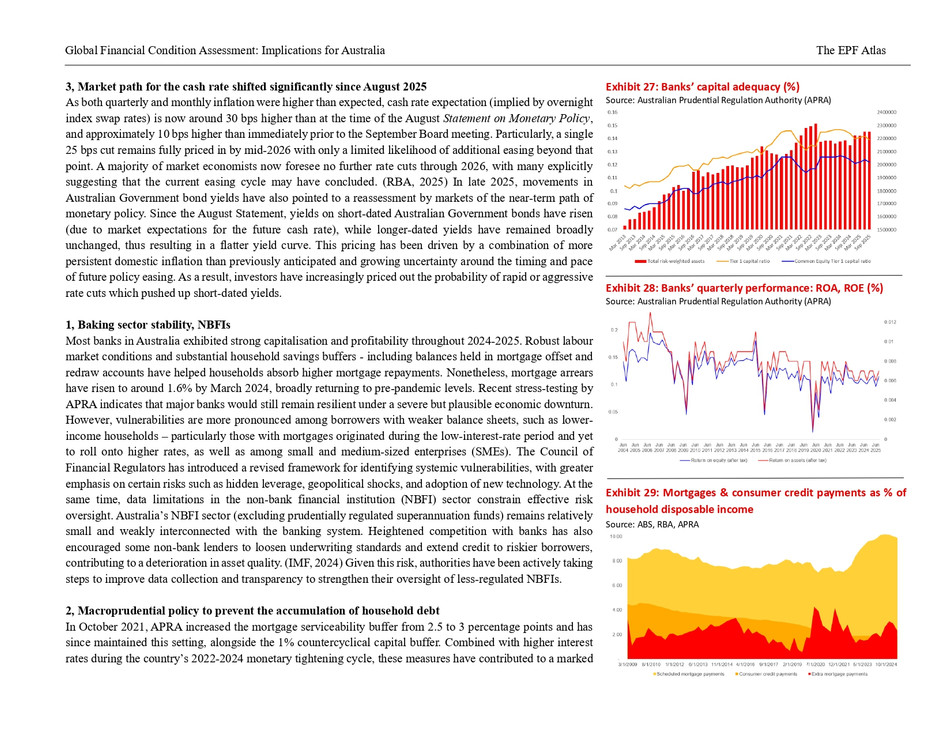 This report assesses the global macro-financial environment and its implications for Australia’s financial stability, with a focus on non-bank financial institutions (NBFIs), sovereign debt dynamics in advanced economies and banking sector funding resilience. Despite a rapid recovery in global risk sentiment following volatility in early 2025, underlying vulnerabilities persist, including elevated leverage and liquidity mismatches in parts of the global NBFI sector, rising sovereign issuance and term premia, and structural weaknesses in China’s property and banking systems.